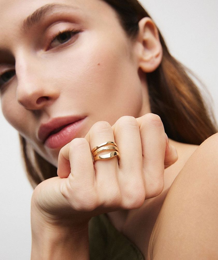 Anillo Mujer Vidal & Vidal X47873 de la colección Texturas. El anillo Mar bañado en oro de 18 Kt, combina elegancia y versatilidad gracias a su diseño ajustable. Original diseño de tres tiras con dos texturas, matizado y brillo. Disponible en las tallas 12-14, con un diámetro interior de 16,5 mm a 17,2 mm, y 16-18, con un diámetro interior de 15,9 mm a 17,2 mm, es el accesorio ideal para realzar cualquier estilo con sofisticación. Piezas con intención, con formas puras y juegos de contrastes, que nos acompañan a diario y encuentran su lugar de forma natural. Porque la verdadera elegancia no deslumbra, simplemente brilla porque tiene sentido.