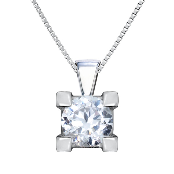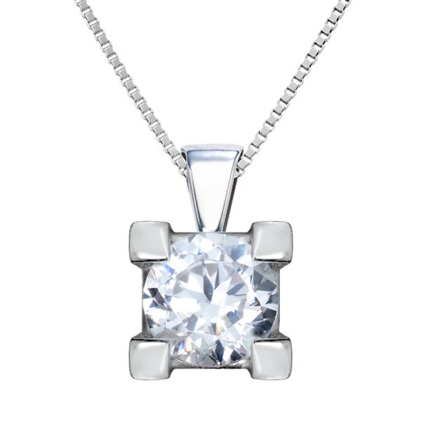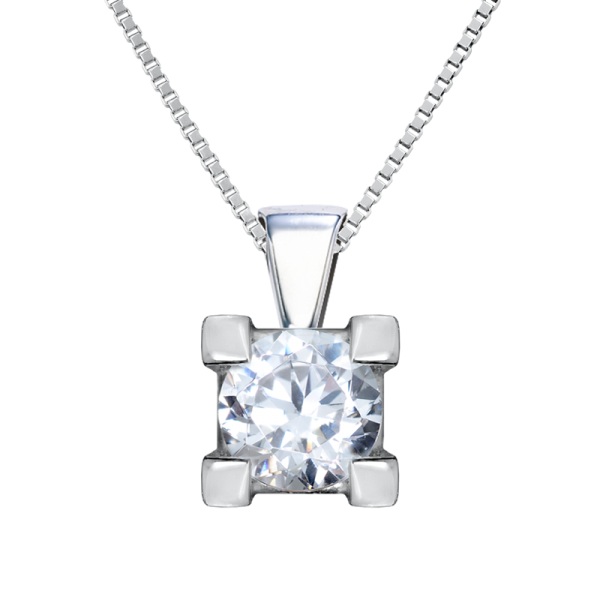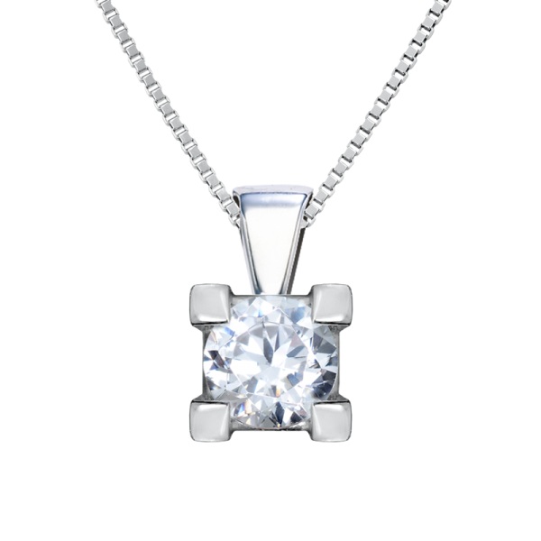Collar de oro blanco y diamante modelo 3022. Esta joya lleva engastado un diamante central talla brillante engastado en 4 garras desde 3 milímetros hasta 4,5 milimetros con un peso total desde 0,10 ct. a 0,35 ct.