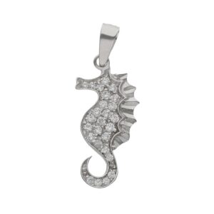 Colgante Oro 18k Caballito De Mar G428 con circonitas y acabado en brillo. Marca Lucarelli.