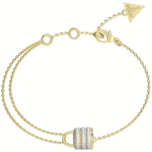 Este collar de Guess destaca por su diseño único, combinando la elegancia del acero bañado en oro con el aspecto refinado de las perlas de formas orgánicas con candado colgando recubierto de piedras de diferentes colores. Símbolo del amor, el candado se rediseña para ser la pieza central de la elegante colección Guess My Secret de la marca americana.