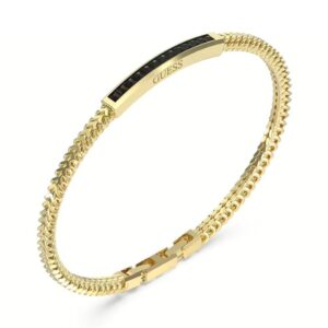 Collar Guess de mujer fabricado en acero con baño de oro, con un colgante en forma de candado decorado con cristales. Este diseño moderno y simbólico transmite fuerza y elegancia, siendo ideal para quienes buscan un accesorio con personalidad y estilo.