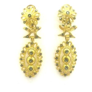 Anillo Filigrana Charra JTSOTEJA realizado en Plata de Ley chapado en oro de 23 kilates. Preciosa sortija de teja también llamada de almendra típica de la ciudad charra. Mide 3×2 cm. Lleva 3 zafiros facetados en el centro y otros más pequeñitos alrededor. Añade un toque artístico y original a tu estilo con estos pendientes inspirados en la famosa calabaza. Una forma diferente y útil de llevar la filigrana charra fabricada de forma artesanal.