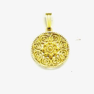 Colgante Filigrana Charra JTS1945 en Plata de Ley. Precioso colgante circular de 15mm de diámetro con un botón charro en el centro. Su medida es de 15mm. Añade un toque artístico y original a tu estilo con este colgante que hace un guiño al sombrero mexicano. Una forma diferente y útil de llevar la filigrana charra fabricada de forma artesanal.