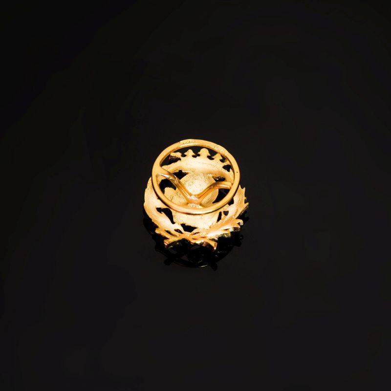 Insignia profesional fabricada en oro de 18 kilates (750 milésimas). Emblema profesional de la carrera universitaria de Geografía.