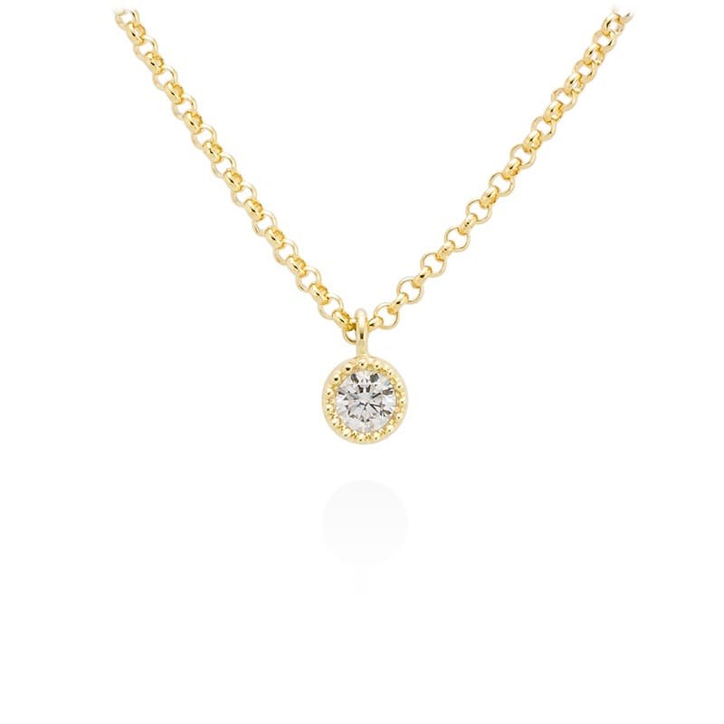 Collar Catalina Marina García 90777GD, tipo chatón realizado en plata de ley (925) chapado en oro de 18 Kt con circonita blanca ideal para ese día tan especial.. Mide 40+5 cm. Tamaño del colgante 9 mm. Entrega en 24 horas y ENVÍO GRATIS a Península, Baleares y Portugal a partir de 50€.