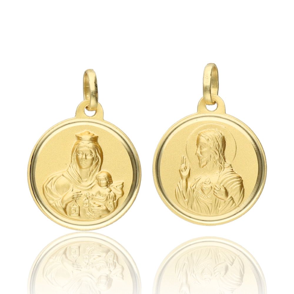 Medalla escapulario con la virgen del Carmen y el Sagrado corazón en oro de ley 18 k. con acabado satinado