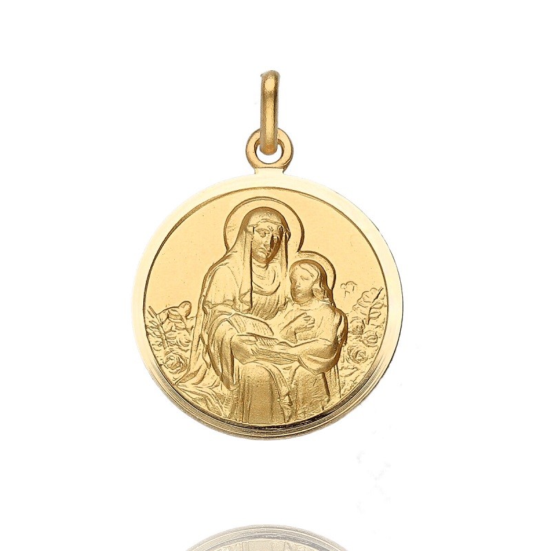 Medalla Santa Ana Oro 18 K 00152019. Medalla religiosa con acabado satinado. Diametro 18,5 mm. Un regalo perfecto para el día de su comunión o bautizo. Presentación para regalo. Grabación gratuita. Entrega en 5 días y ENVÍO GRATIS*