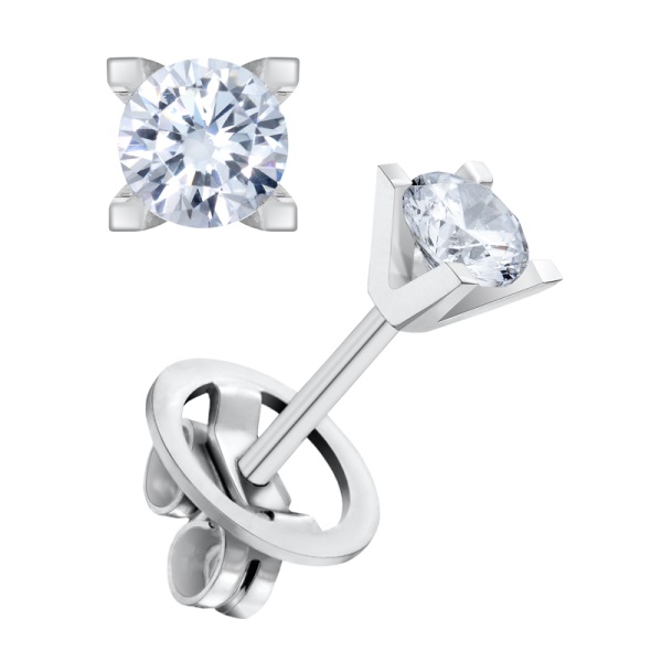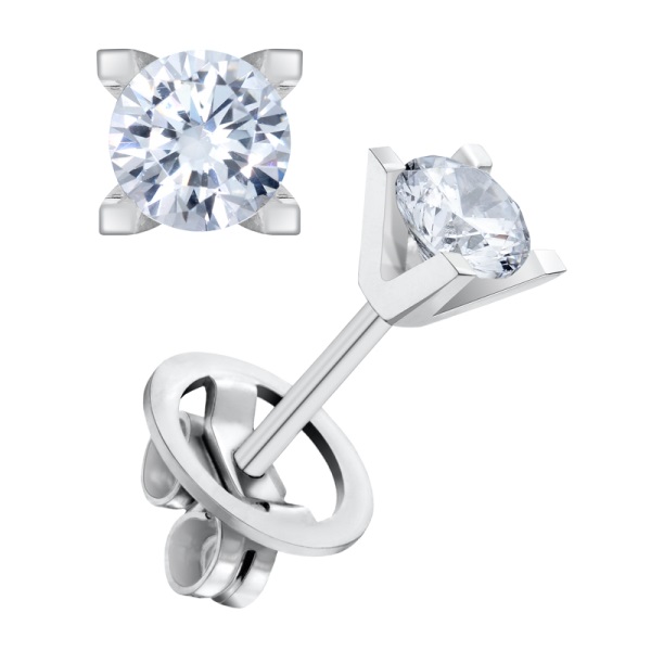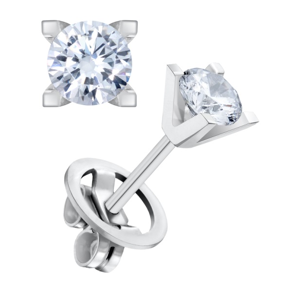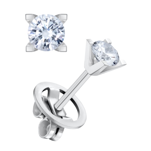 Pendientes de oro blanco y diamantes modelo 2016. Esta joya lleva engastados dos diamantes talla brillante en 4 garras con un peso total desde 0,20 ct. a 0,70 ct..