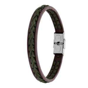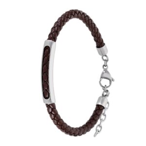 Pulsera Marea Jewels Hombre C00103/326 realizada en acero y piel marrón trenzada.