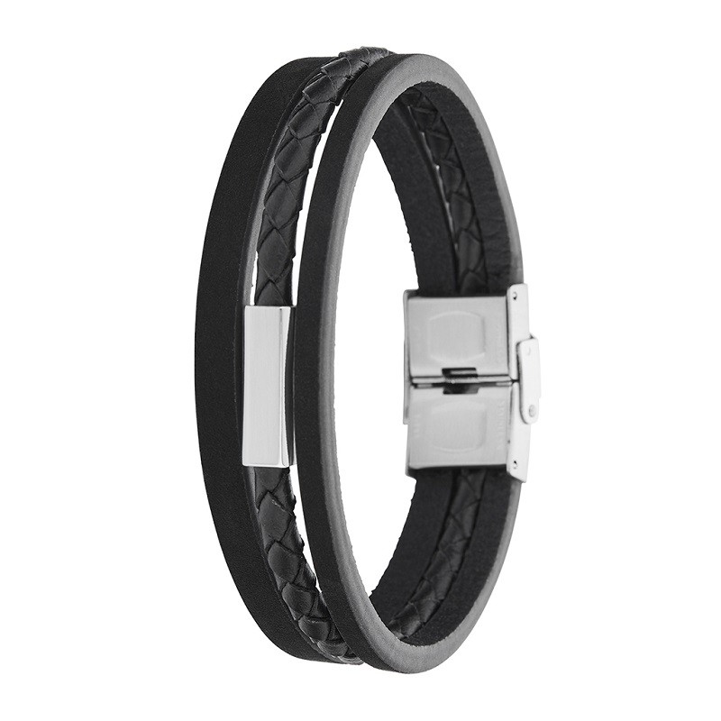 Pulsera Marea Jewels Hombre D00103/152 de piel negra trenzada y acero. Medida de la pulsera 21,5 cm. Se adapta fácilmente a varias medidas. Entrega en 24 Horas*