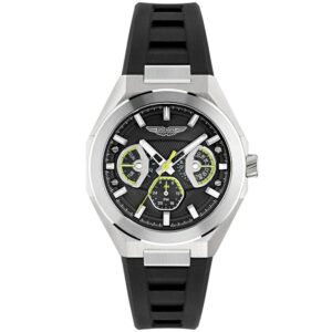 Reloj Aston Martin Hombre MTRH1F501 es un reloj atrevido de la colección Thrill, diseñado para llamar la atención con su diámetro de 44 mm. Su llamativa esfera multicapa está detallada con detalles contrastantes, creando una apariencia dinámica que llama la atención. La correa de silicona verde se integra perfectamente con la caja, la esfera negra y el bisel dorado, brindando una estética cohesiva y moderna.