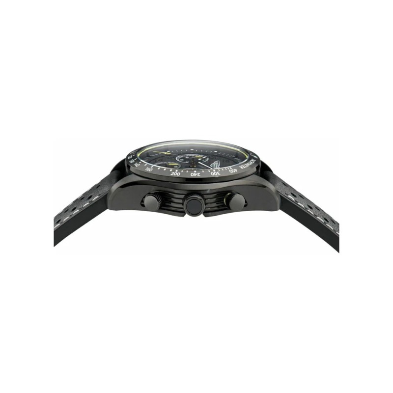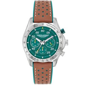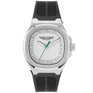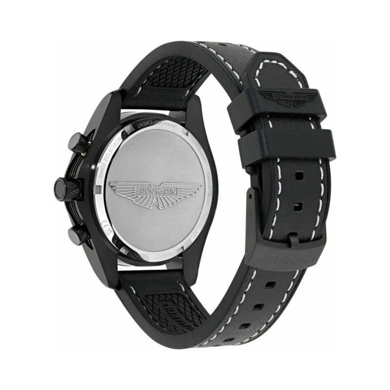 Reloj Aston Martin Hombre MTRS1F502 cronógrafo diseñado para brindar elegancia y control. Esta versión SGT presenta una esfera negra profunda con detalles en esencia de lima, realzada por números deportivos y enmarcada por un anillo taquimétrico negro a juego. La caja de acero inoxidable negro IP de 42 mm tiene una forma que brinda un atractivo aerodinámico, mientras que la correa perforada negra con costuras en contraste ofrece agarre, comodidad y durabilidad.