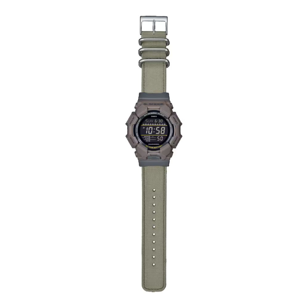 Descubre el GD-010, un G-SHOCK de gran tamaño con batería de larga duración, pensado para acompañarte en tu estilo de vida activo y en contacto con la naturaleza. Diseñado para soportarlo todo, este modelo ofrece resistencia a los golpes y una batería que dura hasta 10 años. La caja está fabricada con resina de base biológica, un material más sostenible que ayuda a reducir el impacto medioambiental. La correa está hecha con CORDURA® ¹ re/cor™, una combinación de fibra CORDURA® de alta resistencia y plástico PET reciclado. Además, se tiñe con FOOD TEXTILE, un proyecto que reutiliza extractos naturales de alimentos —en este caso, de equinácea— para conseguir tonos suaves y naturales. Gracias a su diseño fresco y a los materiales con los que está fabricado, este reloj encaja tan bien en un entorno informal como en el día a día laboral. ¹ CORDURA® es una marca registrada de INVISTA para tejidos duraderos. FOOD TEXTILE es una iniciativa que da una nueva vida a los residuos alimentarios, transformándolos en tintes naturales para promover una moda más sostenible. Debido al uso de tintes naturales, cada unidad es única y puede presentar variaciones en el color.