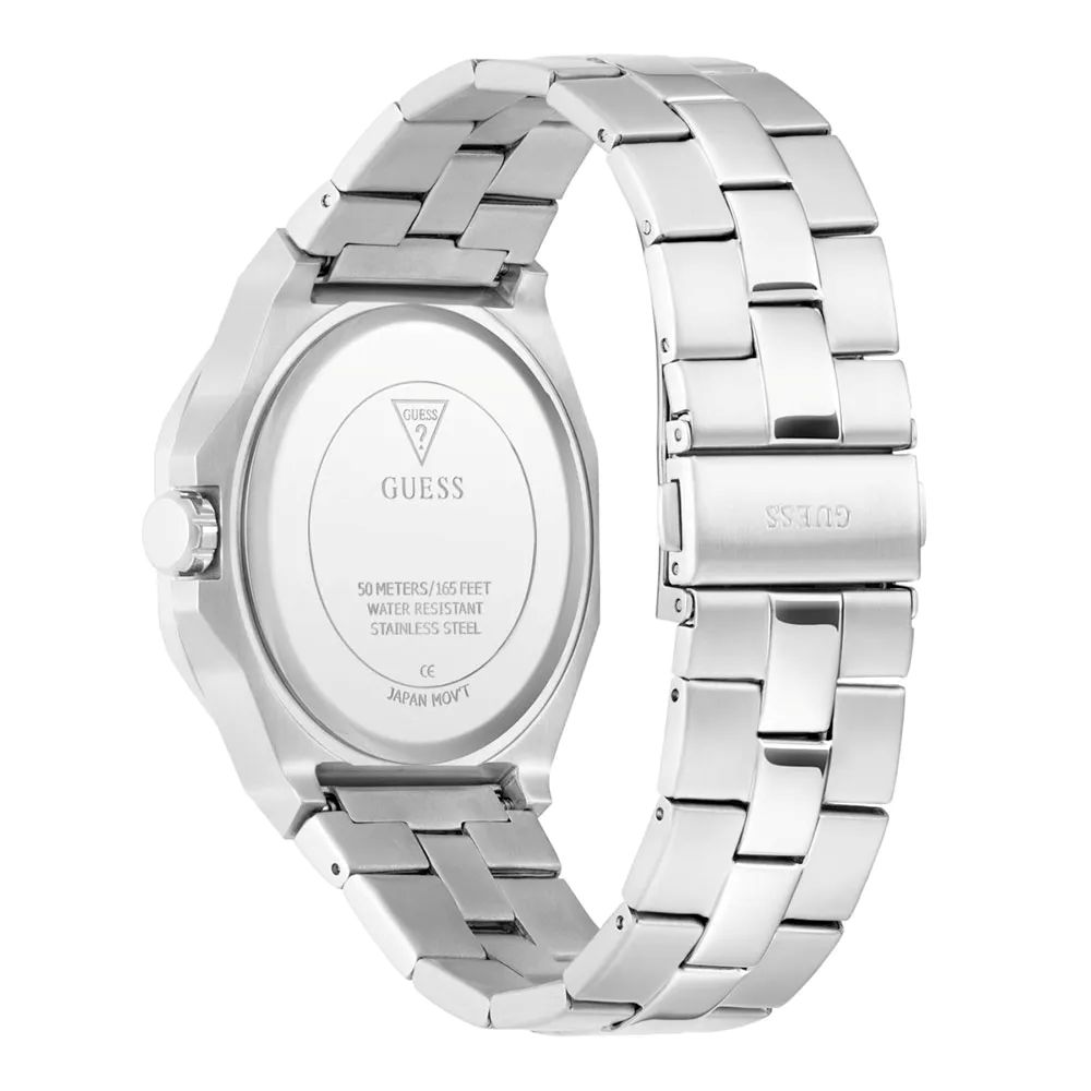 Reloj Guess Hombre GW0849G1. Elegante reloj con caja octogonal en acero inoxidable y esfera azul noche, adornado con números Romanos a las doce y a la seis, índices y agujas luminiscentes.