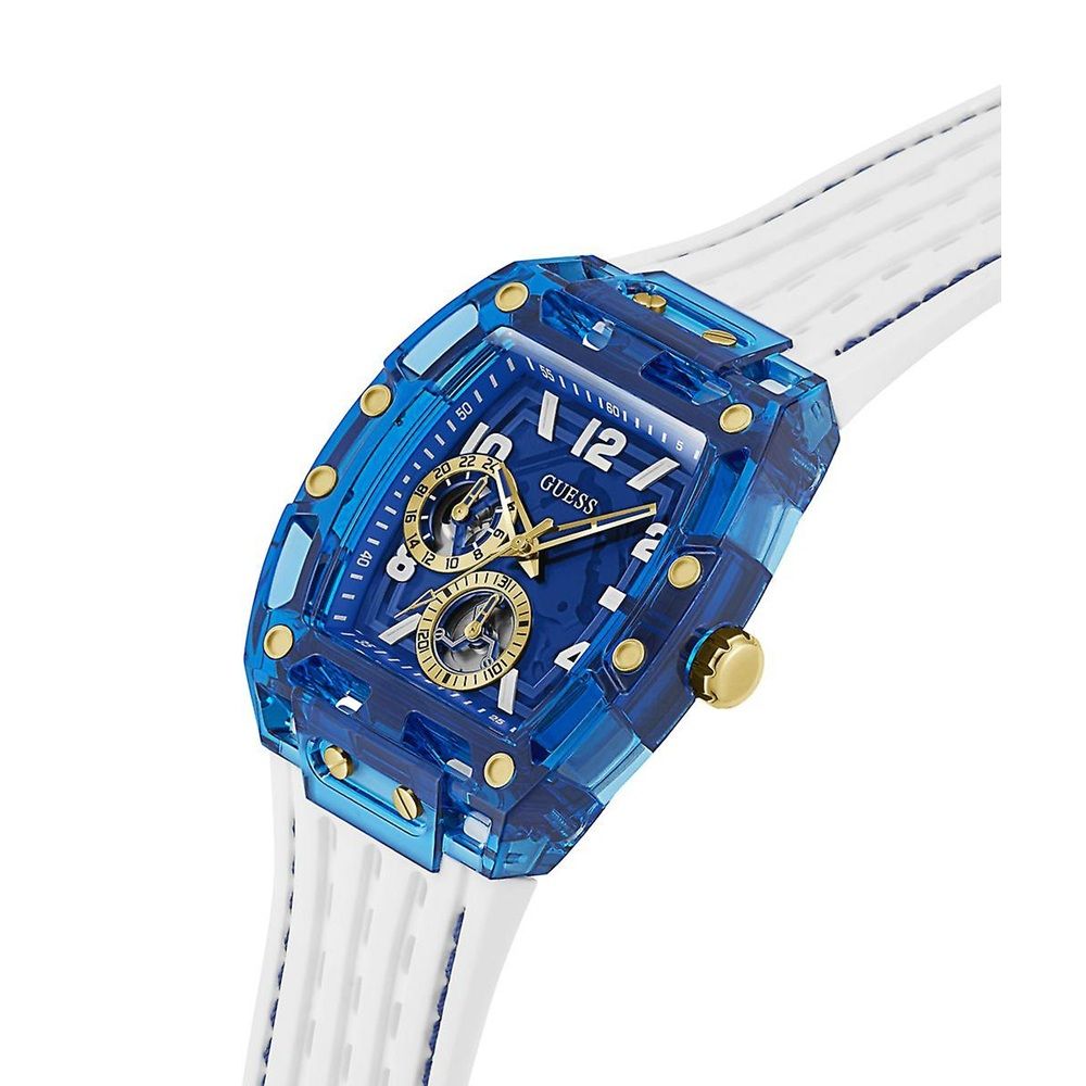 Original reloj de esfera Rectangular Blanco Azul, reloj de policarbonato y silicona para hombre de la marca Guess.