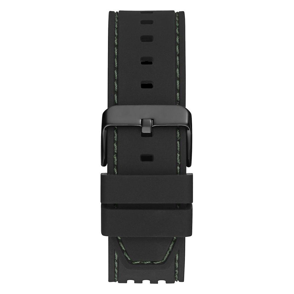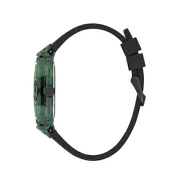 Original reloj de esfera rectangular Verde-Negro, reloj de policarbonato y silicona para hombre de la marca Guess. Caja troquelada en policarbonato verde con correa negra y esfera plata.