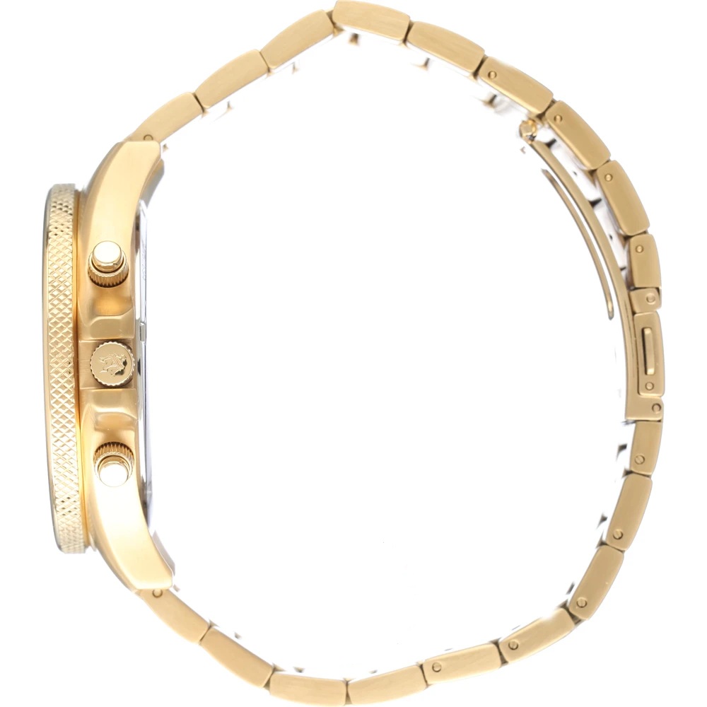 Reloj Maserati R8873640005 para hombre de la colección Sfida con maquinaria de cuarzo con cronógrafo. La caja es de acero dorado y tiene un diámetro de 44 mm. La esfera es de color dorado con el Tridente, icono de la marca Maserati a las 12 y calendario e iconos con acabado verde. Su correa es de acero dorado con cierre desplegable con pulsador. Este reloj es resistente al agua 10 ATM y tiene una garantía internacional de 2 años.