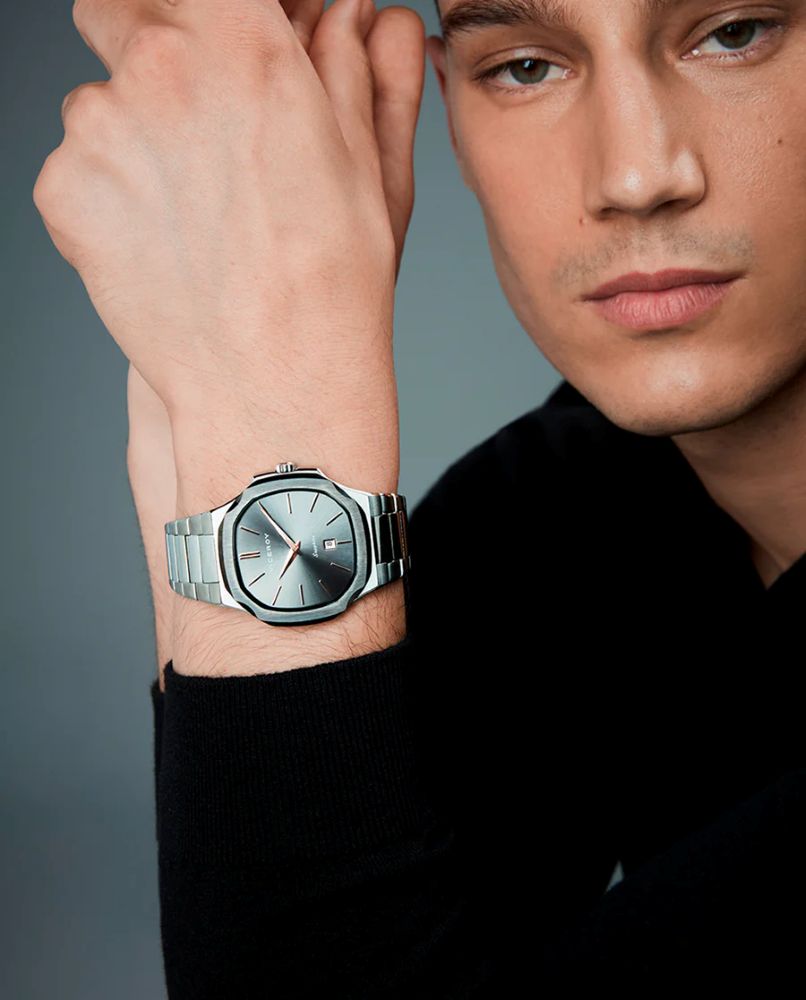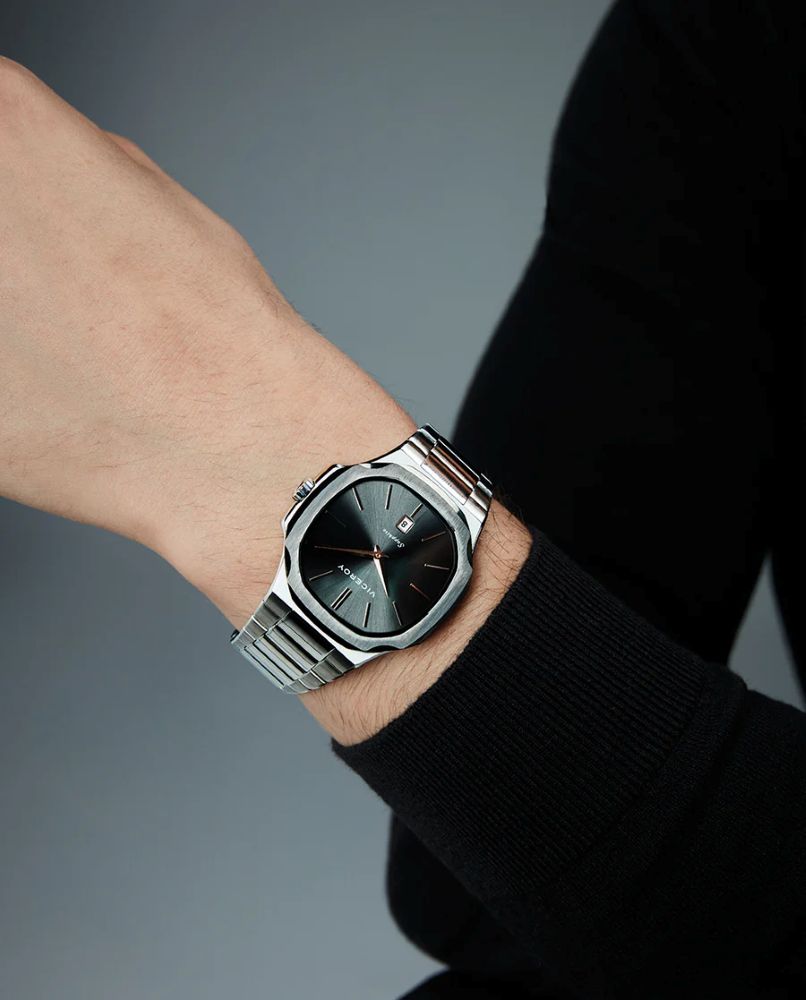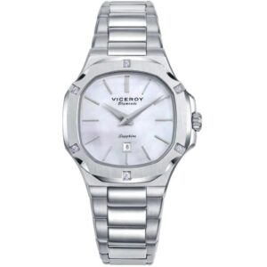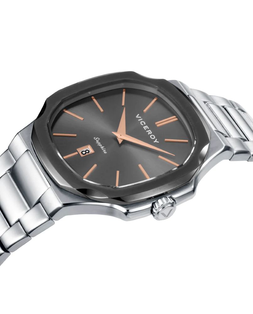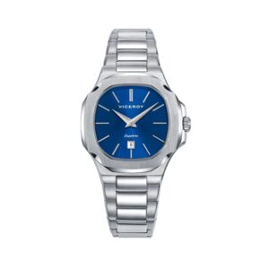 Reloj Viceroy Hombre 45111-17 Laura Escanes fabricado en acero inoxidable plateado y gris. Estamos ante un atractivo reloj compuesto por caja de 41mm de diámetro con bisel plateado que posee esfera azul que cuenta con indicadores en forma de barras en plateado al igual que sus agujas movidas por mecanismo de cuarzo analógico con función de calendario. Todo ello protegido por cristal de Zafiro. Su brazalete lo forman eslabones plateados con cierre desplegable mediante doble pulsador. Resistente al agua hasta 10 ATM.