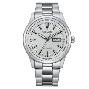 Reloj Tsuyosa Citizen, movimiento Automático de recarga automática 8210 (21.600 oscilaciones x hora) 21 joyas. Intervalo de exactitud medio diario: -20 a +40 segundos, según condiciones ambientales y de uso. 40 horas reserva de marcha (si está al 100%). Caja de acero, 11,7mm. grosor, 40 mm de diámetro con fondo cerrado a rosca transparente. Brazalete de acero sólido. Cristal de Zafiro. Luminous en agujas e índices. Calendario con lupa. WR 5 bar.