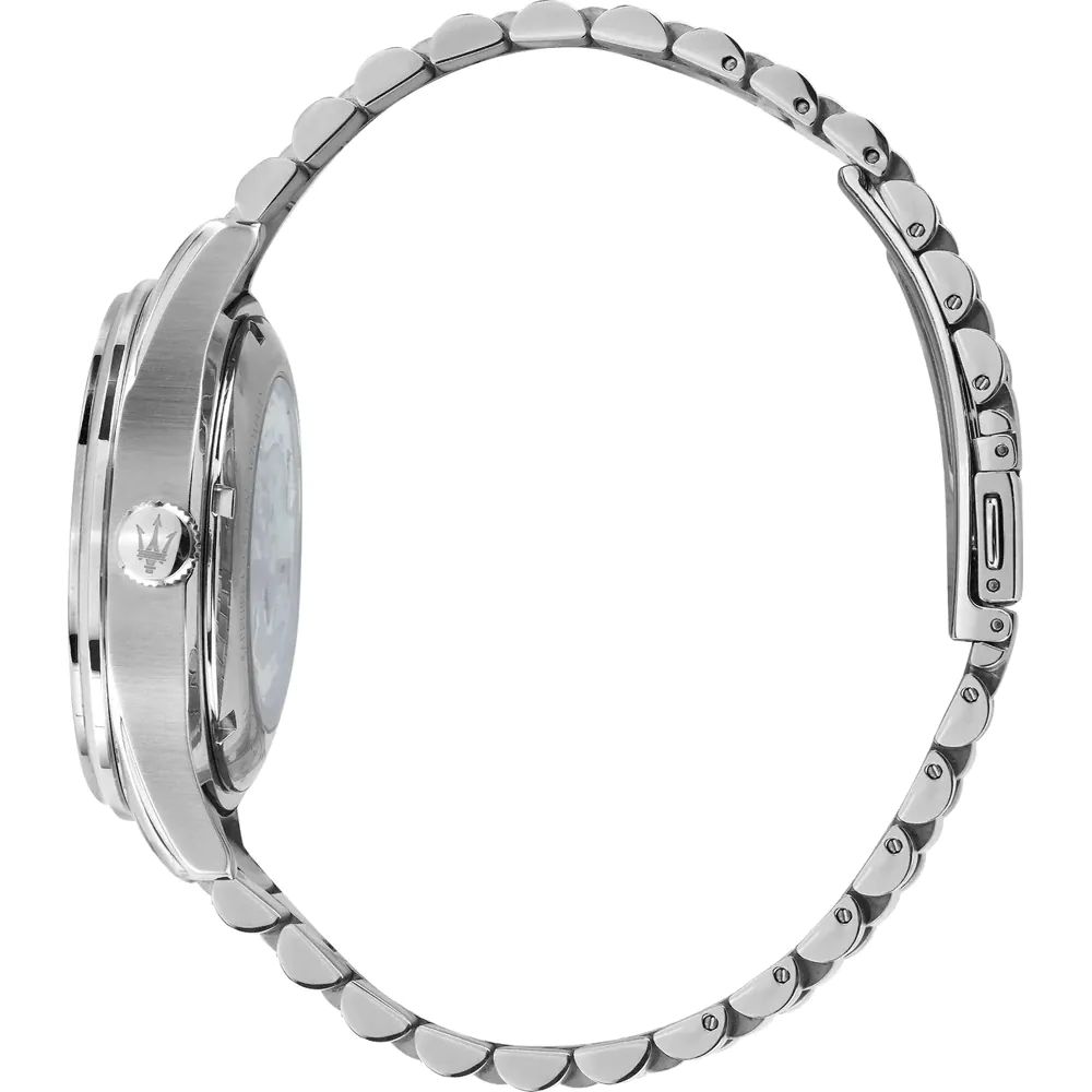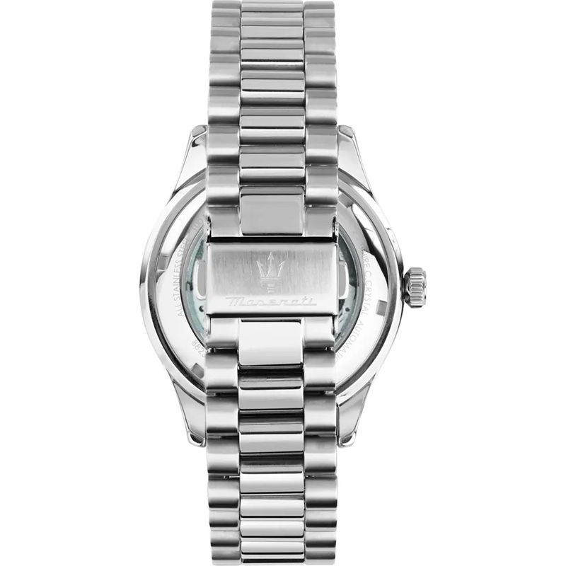 Reloj Maserati Hombre R8823124002 Automático de la colección Sorpasso fabricado en acero inoxidable plateado. Estamos ante un reloj de diseño lleno de elegancia compuesto por caja de 42mm de diámetro con esfera azul que contiene indicadores en forma de barras y agujas en dorado por mecanismo automático que podemos ver a través de la esfera tipo “skeleton”. Su brazalete lo forman eslabones plateados con cierre desplegable mediante doble pulsador. Resistente al agua hasta 10 ATM.. El reloj se envía en su embalaje original, con una garantía de 3 años. La perfección técnica y el cuidado de los detalles que Maserati pone en cada reloj un estilo inconfundible, que evoca en originales creaciones de clase los elementos más icónicos de la historia y del diseño de la casa del Tridente.