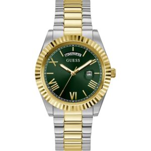 Reloj Guess Mujer GW0807L2 de la colección Mod Id fabricado en acero inoxidable dorado. Estamos ante un reloj de diseño atrevido puramente femenino compuesto por caja rectangular de 24mm de ancho con esfera en color leopardo con indicadores dorados en forma de barra y agujas doradas movidas por mecanismo de cuarzo analógico. Todo ello protegido por cristal mineral. Su brazalete lo forman eslabones dorados con cierre de joyería. Resistente al agua hasta 3 ATM.